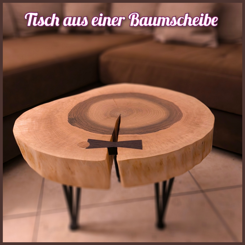 Getragen wird die massive Holzplatte von drei Haarnadelbeinen aus Stahl, die nicht nur für Stabilität sorgen, sondern dem Tisch auch eine elegante Leichtigkeit verleihen. Ob als Couchtisch, Beistelltisch oder Design-Statement – „Herzstück“ ist mehr als ein Möbelstück: Es ist ein Symbol für natürliche Schönheit und handwerkliche Perfektion.