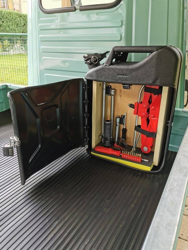 Ich verwende diesen hammerschlag lackierten Kanister in einer schönen Farbe. Dieser ist Kratzfest und damit perfekt geeignet. Verwendet ihr einen anderen oder wollt ihr eine bestimmte Farbe haben müsst ihr diesen natürlich Lackieren. Hierauf gehe ich bei diesem Tutorial nicht ein.
