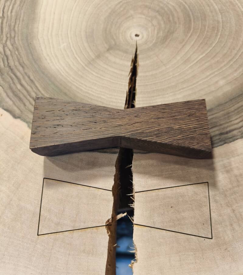 Fertigt das Inlay auf jeden Fall der Länge nach mit der Holzfaser an, ansonsten könnte der Schwalbenschwanz reißen.
