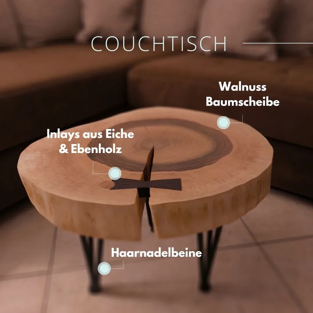 - einzigartiges Tischdesign mit Inlays zur Rissstabilisierung