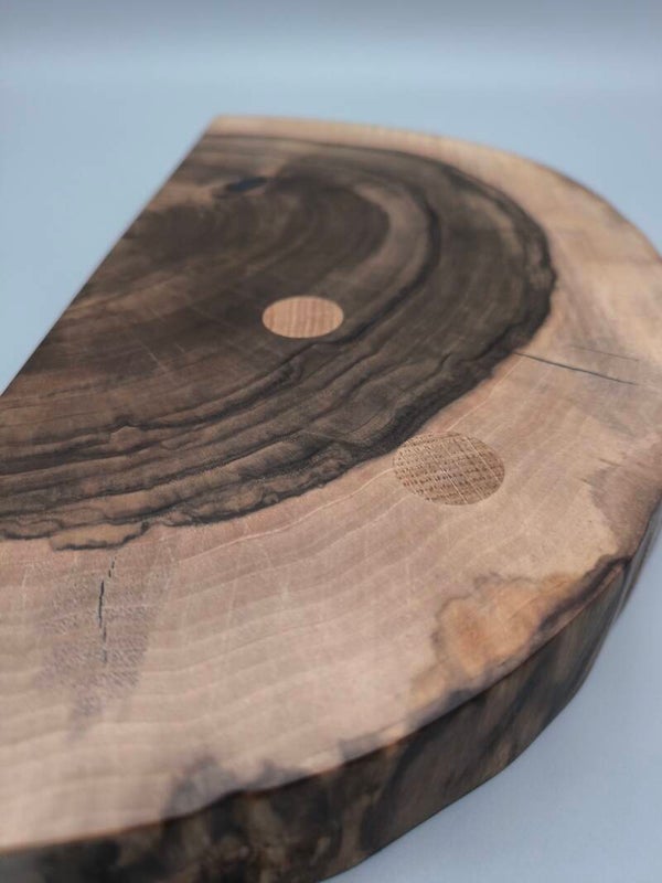 unser halbrundes Stirnholzschneidebrett aus edler Walnuss ist das perfekte Accessoire für Ihre Küche. Mit einer Stärke von 5 cm bietet es eine robuste und langlebige Oberfläche für müheloses Schneiden, Hacken und Zubereiten von Lebensmitteln.