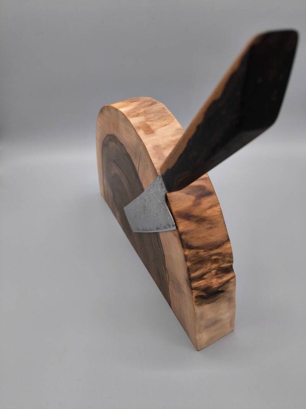 Stirnholz-Schneidebrett mit Magnetmesseraufbewahrung aus Walnuss